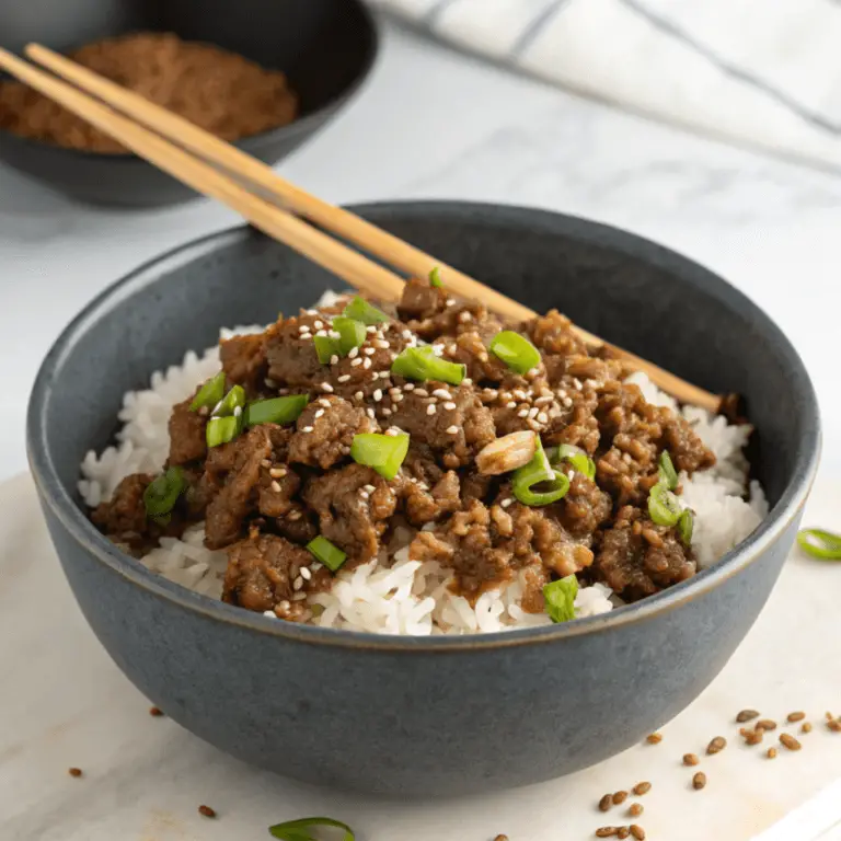 Korean Ground Beef and Rice Bowls are a fusion-inspired dish that blends the comforting heartiness of ground beef with the sweet, savory, and slightly spicy flavors of Korean cuisine. Served over fluffy rice, it’s a balanced meal that ticks all the boxes: protein-packed, easy to make, and flavorful. The sauce, a mix of soy sauce, garlic, brown sugar, and sesame oil, is the hero of the recipe.