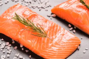 - Bake or pan-sear fresh salmon until fully cooked.